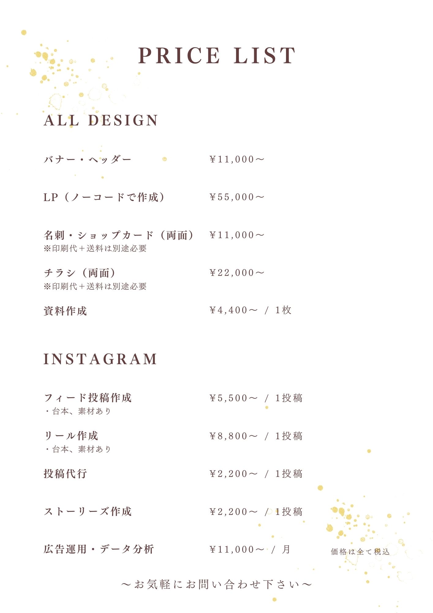 デザイン制作の依頼において、1番多い問い合わせが料金についてです。 そんなお客様の不安を無くすため、明瞭な料金表を作成しました。お気軽にお問い合わせください。
